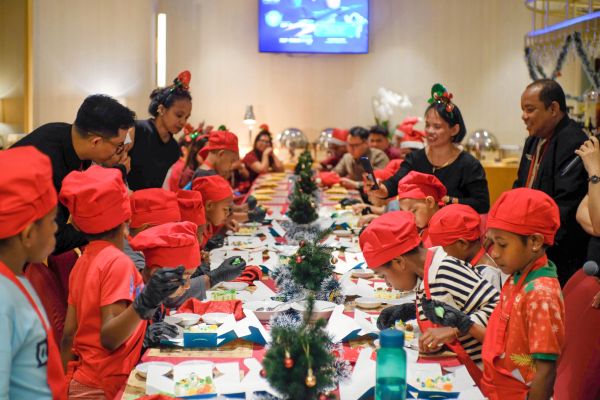 Usai suasana penuh khidmat tersebut, keceriaan kembali terasa saat para anak mendapatkan pengalaman langsung melalui aktivitas cooking class bersama Executive Chef, Chef Hidayat, dan Pastry Chef, Chef Irham. Dalam kegiatan ini, anak-anak diajarkan untuk menghias kue berbentuk pohon Natal. Aktivitas ini tidak hanya mengasah kreativitas, tetapi juga menciptakan momen kebersamaan yang penuh tawa dan kehangatan.