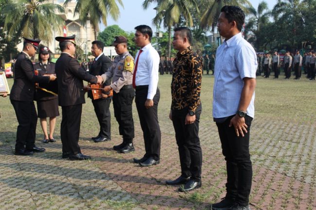 Kapolres selain memberikan penghargaan kepada anggota Polri yang berprestasi, juga memberikan penghargaan pula kepada beberapa orang anggota masyarakat yang berpartisipasi aktif dalam membantu tugas-tugas kepolisian.”Semoga Polri semakin mendapat dukungan dan partisipasi masyarakat dalam membantu tugas-tugas kepolisian,” harapnya, usai memimpin upacara.