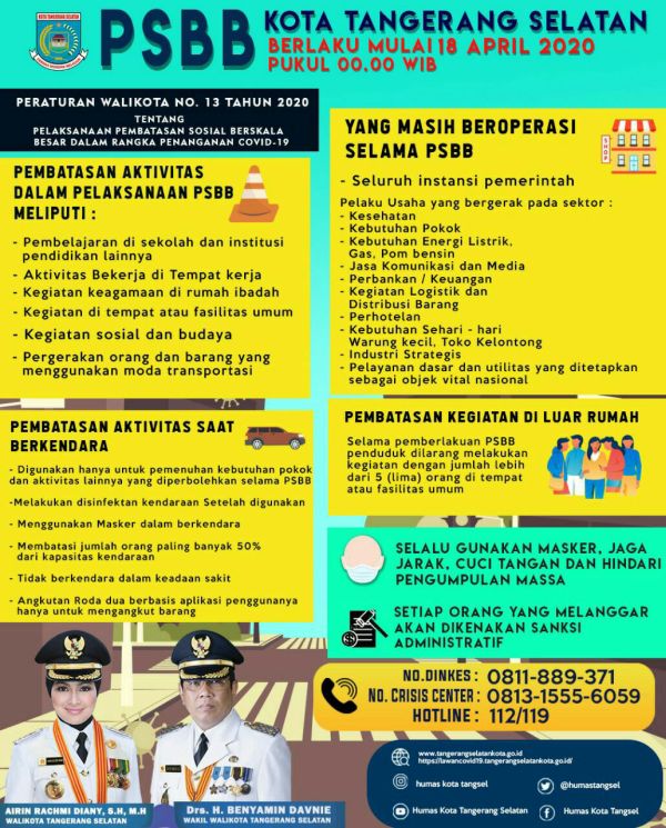 “Berdasarkan Perwal PSBB nomor 13 tahun 2020. Pada poin 3 dan pasal 4, bahwa usaha restoran atau pengusaha makanan memiliki 9 kewajiban yang harus diterapkan selama masa PSBB di Tangsel,” terang Wali Kota Tangsel, Airin Rachmi Diany, Jumat 17 April 2020.