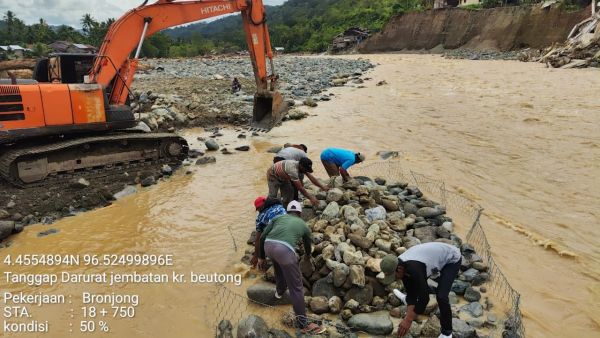 Beberapa ruas jalan nasional di Aceh masih terputus akibat banjir bandang dan longsor, terutama pada ruas Meureudu–Bireuen, Bireuen–Bener Meriah, hingga koridor Gayo Lues–Aceh Tenggara. Namun seluruh lokasi terdampak telah ditangani dengan pengerahan alat berat, penimbunan oprit jembatan, pembersihan material longsor, hingga pemasangan jembatan Bailey secara bertahap.