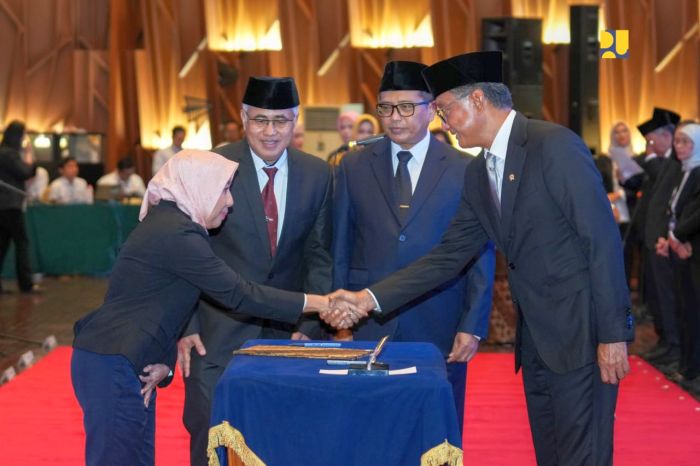 Serpongupdate.com – Menteri Pekerjaan Umum Dody Hanggodo melantik 19 Pejabat Tinggi Pratama dan 54 Pejabat Administrator di lingkungan Kementerian PU, Senin (26/5/2025). Pelantikan secara seremonial dilaksanakan formal di Auditorium Kementerian PU untuk mengukuhkan dan menggantikan beberapa pejabat yang telah memasuki masa purna bakti dan dalam rangka penyegaran organisasi (reorganisasi).
