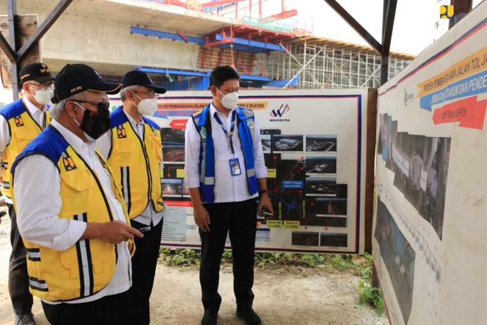 “Utamakan penyelesaian antar Simpang Susun (SS) dari SS Sadang – SS Kutanegara sepanjang 8 km (gate to gate), selesaikan bayar dulu biar bisa lanjut lancar pembangunannya sampai SS Taman Mekar agar segera rampung seluruh seksi 3 Taman-Mekar Sadang sepanjang 27,85 km,” kata Menteri Basuki saat meninjau lokasi pembangunan Tol Japek II Selatan, Senin (30/8/2021).