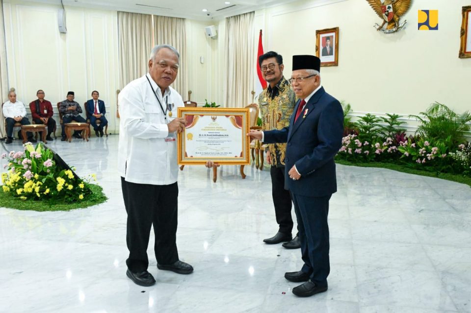 Serpongupdate.com – Menteri Pekerjaan Umum dan Perumahan Rakyat (PUPR) Basuki Hadimuljono mendapatkan penghargaan Adhikarya Utama Pembangunan Pertanian dari Kementerian Pertanian yang diserahkan oleh Wakil Presiden Ma’ruf Amin di Istana Wapres, Jakarta, Senin (14/8/2023). Penghargaan Adhikarya Nararya Pembangunan Pertanian juga diterima Plt.Direktur Jenderal Sumber Daya Air Kementerian PUPR Jarot Widyoko.