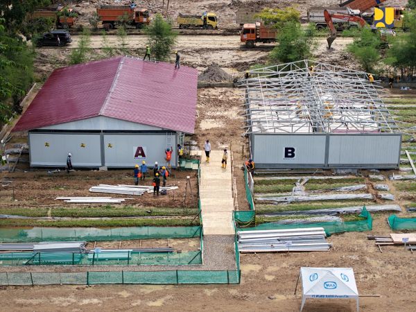 Pembangunan huntara di Aceh Tamiang dilaksanakan oleh Direktorat Jenderal Prasarana Strategis Kementerian PU bekerja sama dengan BUMN Karya PT Wijaya Karya (Persero) Tbk. Progres pembangunan berjalan cepat, dari tahap pekerjaan pondasi hingga atap modular.