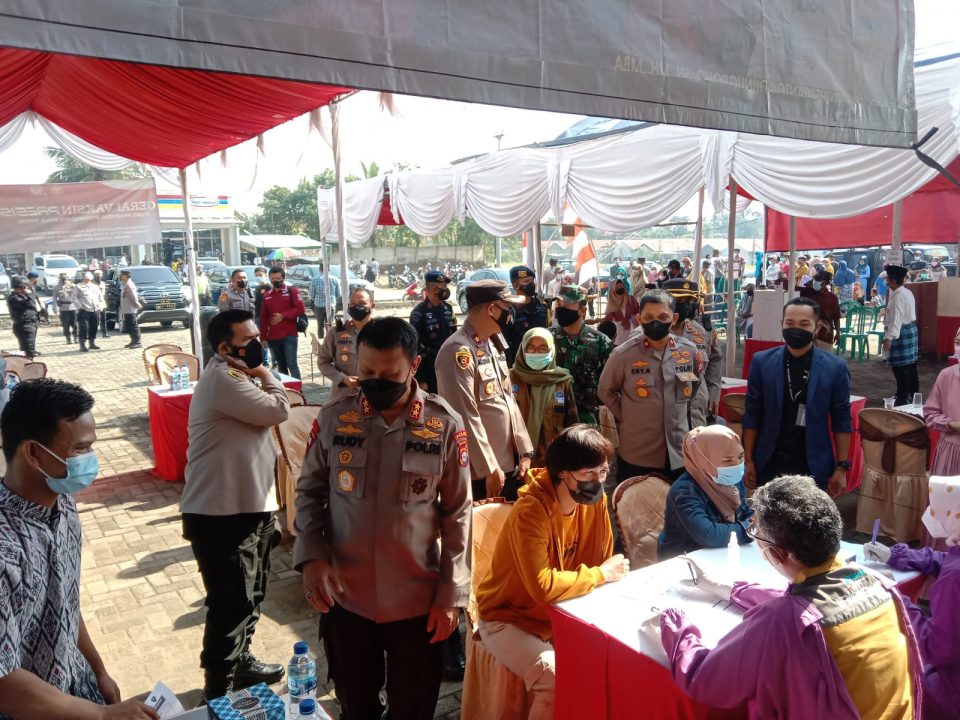 Kali ini, Kapolda Banten bersama Wakapolda Banten mengunjungi TPS 02 Kampung Binong Desa Dukuh Kecamatan Kragilan Kabupaten Serang yang menyediakan gerai vaksin kepada warga. Rudy Heriyanto menyampaikan terima kasih kepada masyarakat yang telah gunakan hak suaranya di TPS lalu memanfaatkan fasilitas untuk divaksin. “Terimakasih kepada para pemilih, saya melihat langsung ada yang divaksin pasca gunakan hak suaranya,” kata Rudy.
