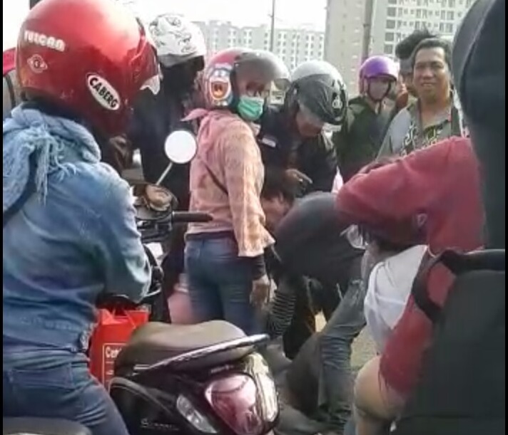 Aksi nekat wanita yang belum diketahui identitasnya itu dipergoki oleh pengendara sepeda motor. Pengemudi ojek online yang melihat langsung berhenti dan memegangi wanita bertubuh subur itu.”Keburu dipegang sama driver ojol,” ujar Yudi pengendara Honda Supra X bernopol B 3136 SME yang melintas di lokasi, Rabu (24/10/2018).