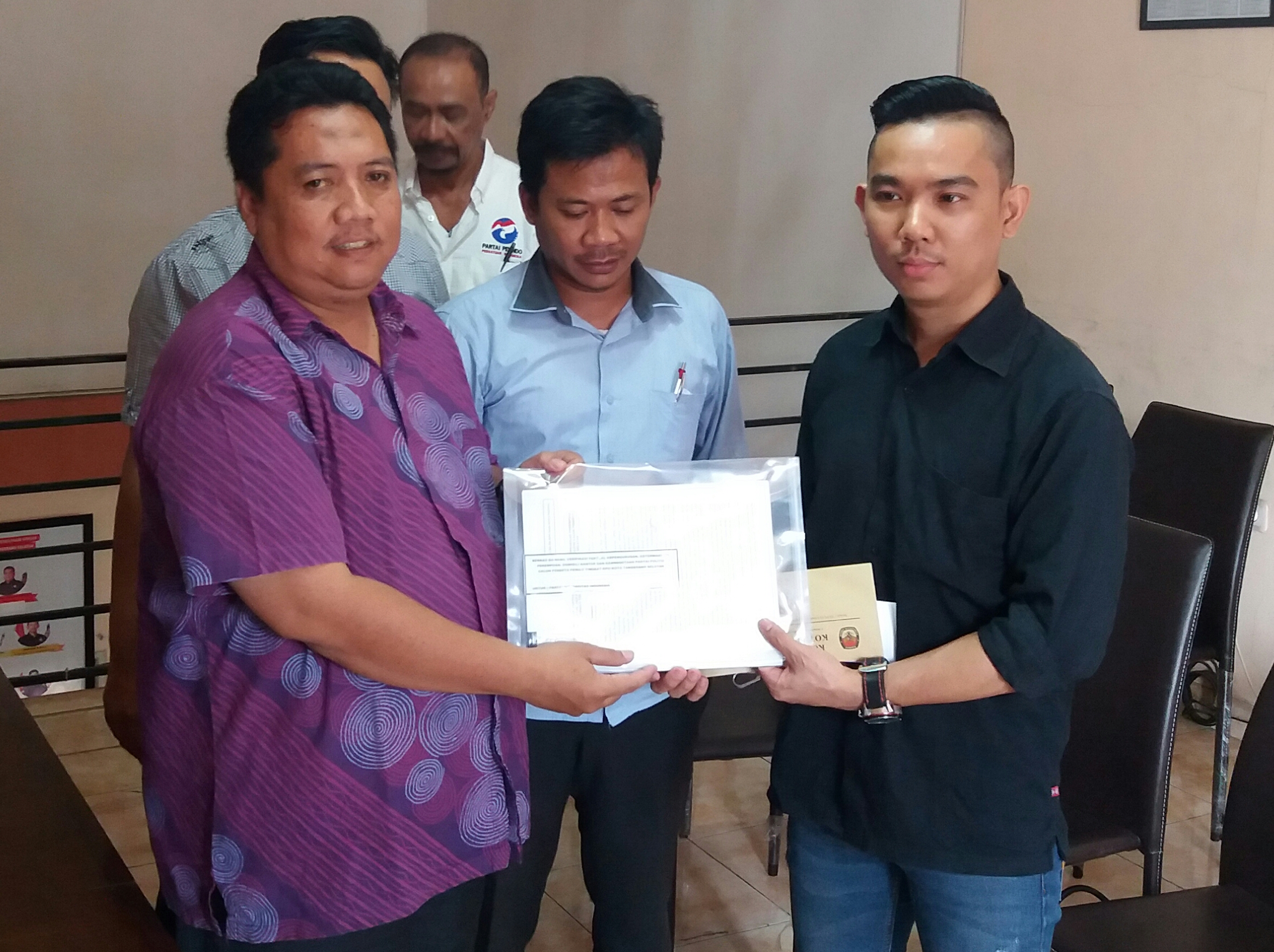 Demikian diterangkan Ketua KPU Kota Tangsel Mohammad Subhan kepada sejumlah wartawan di Kantornya di kawasan Jl Buana Kencana, Serpong, Kota Tangsel, Jum’at (05/01/2018) saat menyerahkan Berita Acara Hasil Verifikasi Faktual kepada dua Partai yaitu Perindo dan PSI.