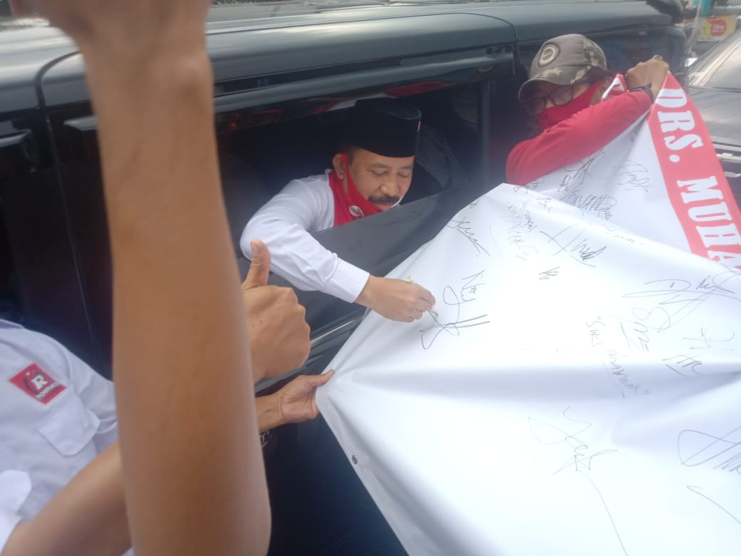 Sebagai bentuk dukungannya kepada Muhamad-Saraswati agar memenangkan Pilkada dan memimpin Tangerang Selatan, banyak pengguna jalan membubuhkan tanda tangan di spanduk yang dibentangkan di pinggir jalan dekat lokasi deklarasi.