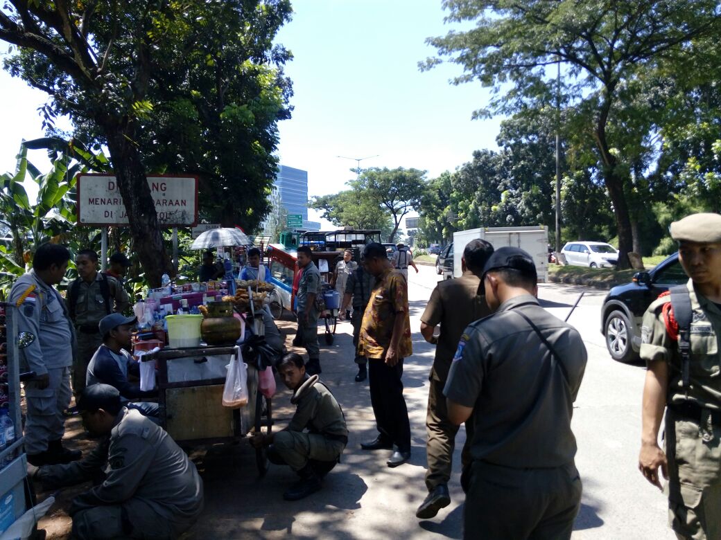 Satpol PP telah merazia pedagang kaki lima di pintu tol BSD-Jakarta persisnya seberang Pasar Modern BSD. PKL diberikan imbauan agar tidak berjualan di sepanjang jalan dekat pintu masuk tol dan segera membubarkan diri. Puluhan gerobak, tak luput tindakan tegas personel dengan cara mengembesi roda gerobak mereka. Diketahui mereka kerap mangkal di titik ini.