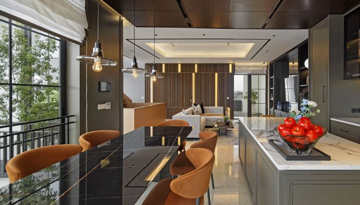 Setiap unit memiliki 3 lantai yang dilengkapi 4 hingga 5 kamar tidur lengkap dengan ensuite bathroom, lantai full marmer di area lantai utama dan koridor, sanitary dari Kohler, lift, sky balcony, fitur smart home system, multi storage garage, dan carport dengan kapasitas hingga 3 mobil.