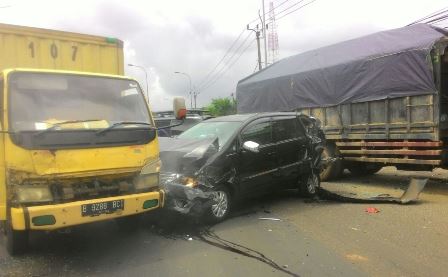 Berdasarkan informasi yang dihimpun, peristiwa tersebut terjadi akibat mobil truk dengan nomor polisi B 9692 FDD bermuatan pasir mengalami rem blong, dalam keadaan oleng menabrak enam kendaraan yang berada di depan mobil dan saling bertabrakan.