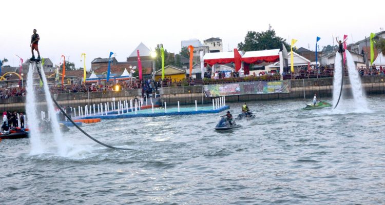 Serpongupdate.com – Perhelatan Akbar Festival Cisadane 2019 resmi dibuka di bantaran Sungai Cisadane, Kota Tangerang, Jum’at (26/7/2019). Acara yang berlangsung di sungai terbesar di Banten tersebut, dibuka dengan kemunculan parade perahu naga yang menyusuri sungai mulai dari Dermaga Peh Cun hingga Jembatan Apung.